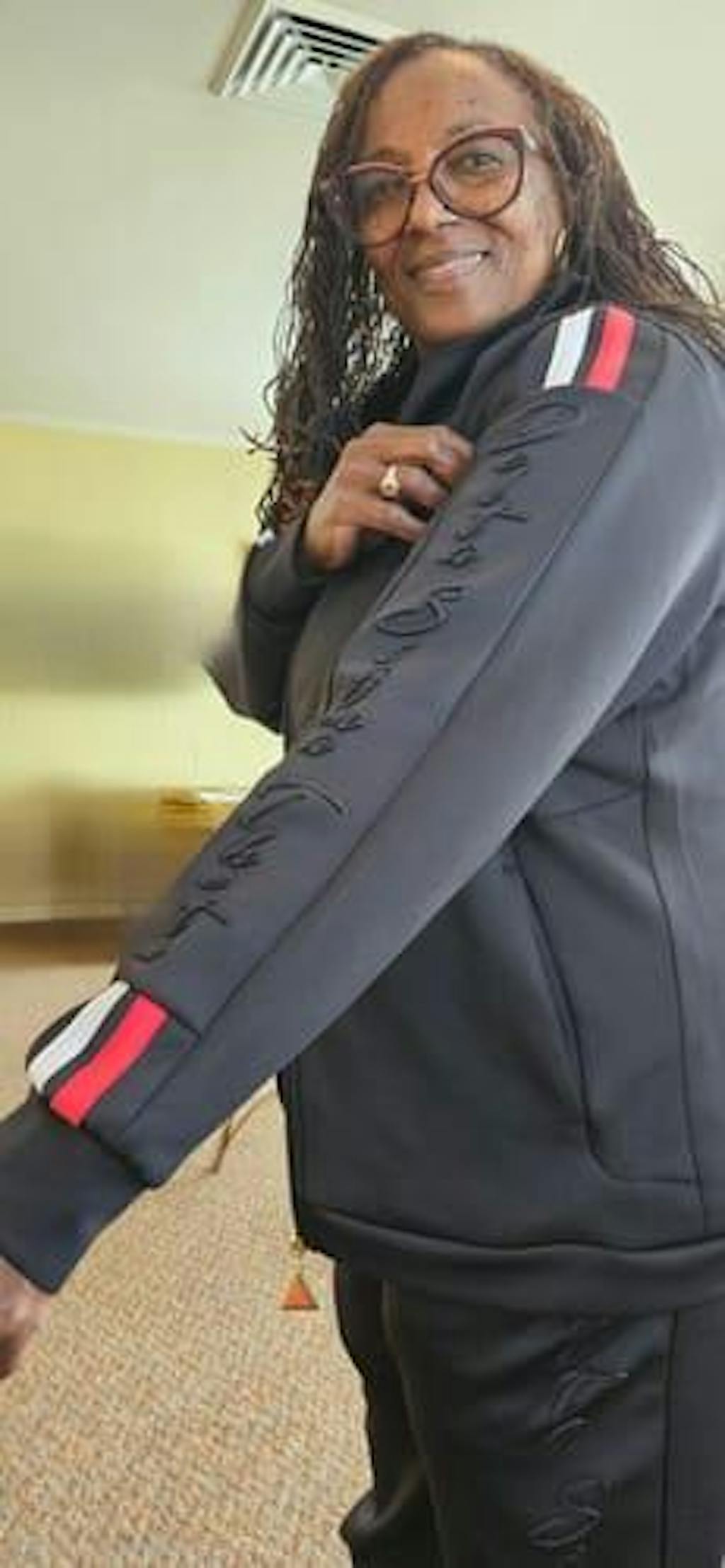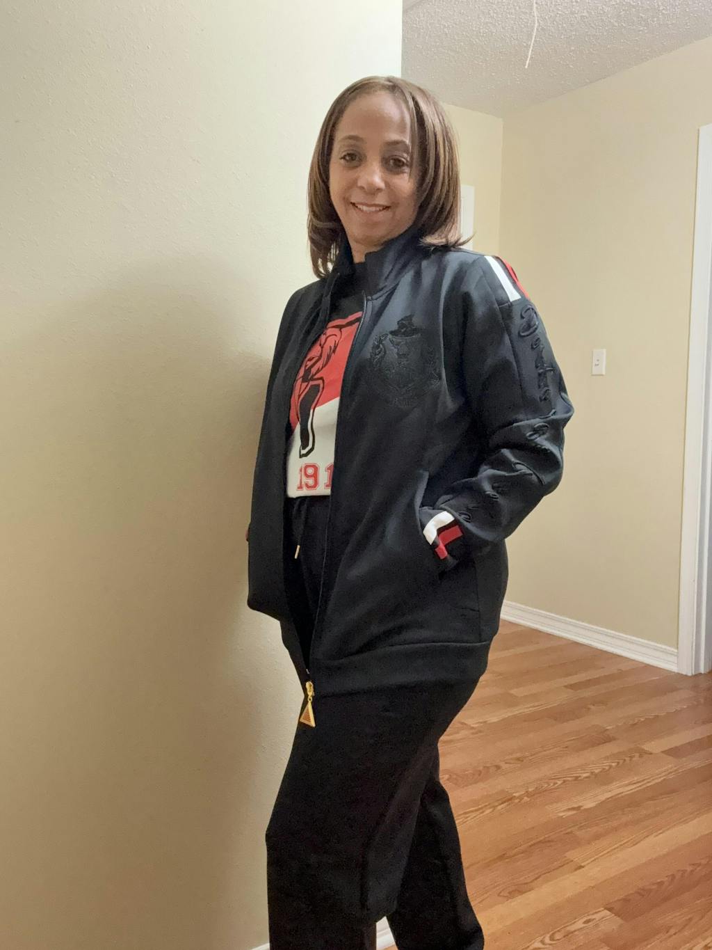 Leslie C. (United States) Love this entire track suit! Well made, feels great, and looks exceptional on. My favorite 2 piece Delta item!