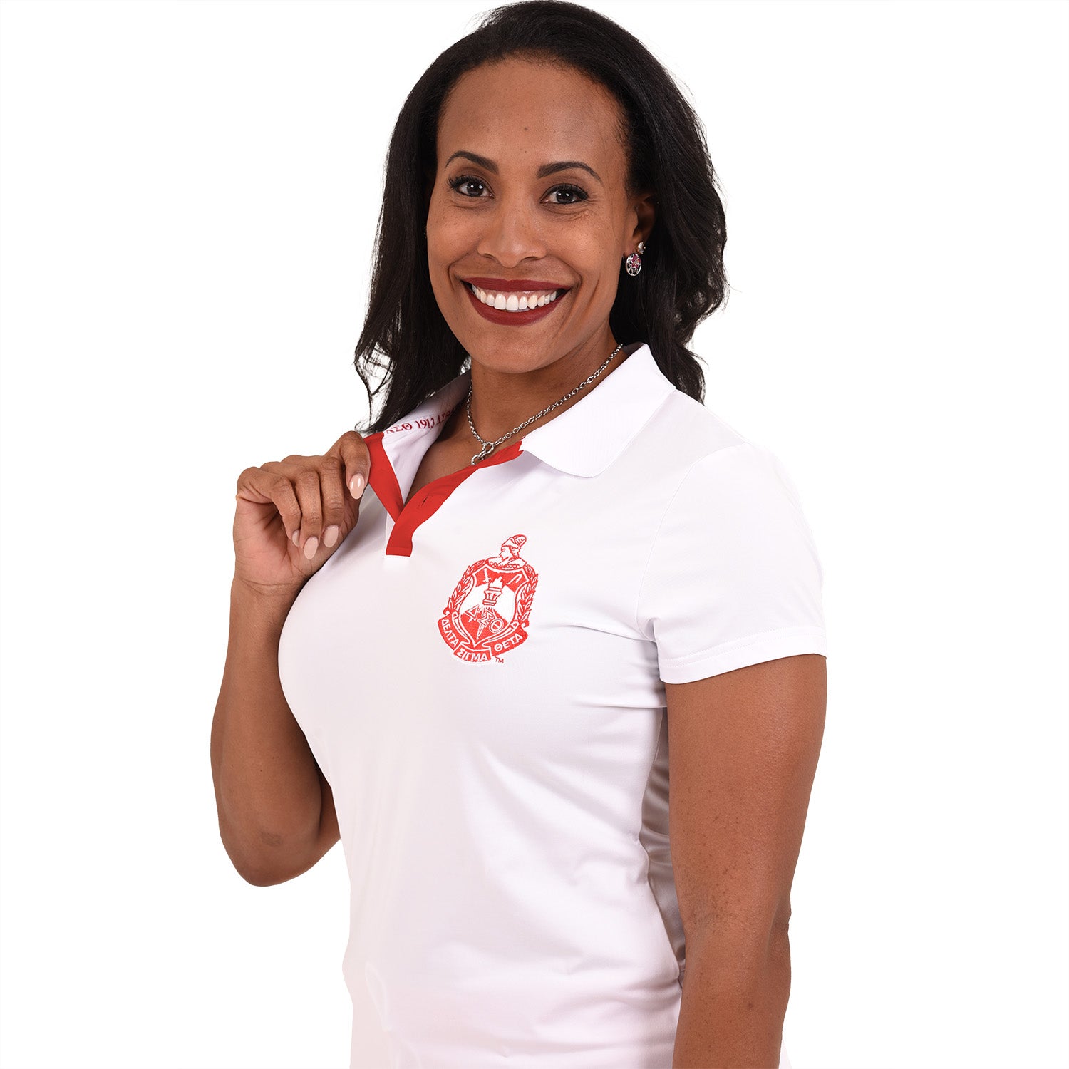 • Distinct ΔΣΘ/1913 Red Jacquard Woven Inner Neckline Tape: A unique feature that gives this Polo just a nice hint of pop!