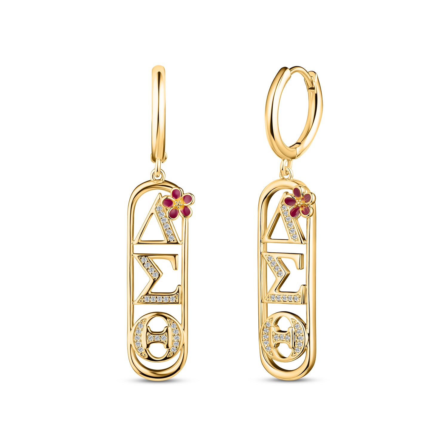 Adorably Chic! ✨ Introducing the Vertical DST Letters with Mini African Violet – a charming earring set that’s too cute to resist! Featuring elegant vertical DST letters adorned with delicate mini African violets, this piece adds a touch of sophistication.. Perfect for showing off your Greek pride with a dash of floral flair, these accents are a must-have for anyone looking to elevate their ear candy!
