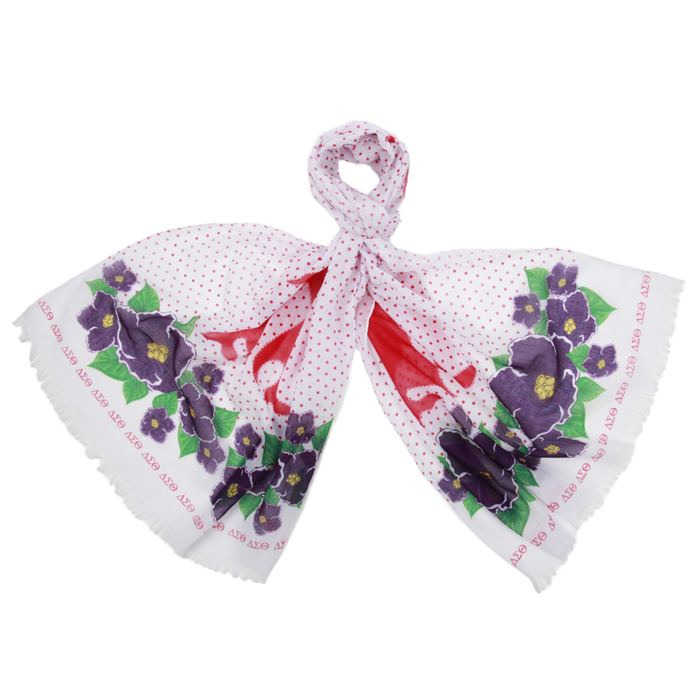 Bold Lady Fortitude on both ends showcase this design on a white base scarf! The large size allows you to accent your outfit in many ways, check out the video below on how to get multiple looks from our scarves- Eyelash fringe on short ends