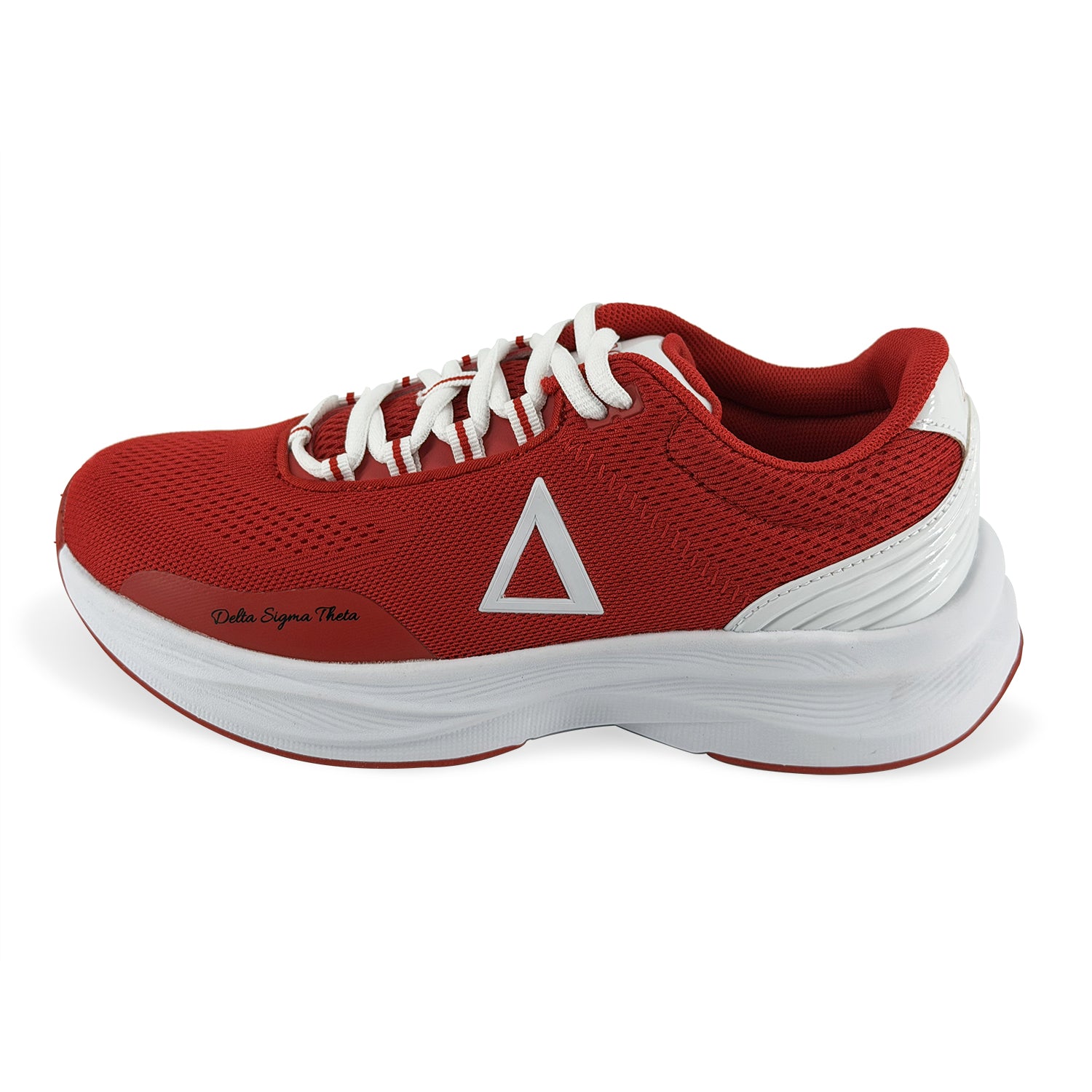 Breathable, lightweight red engineered mesh keeps your stride cool and effortless, while the Red Bottom sole and Bold Outline Δ Appliqué make a statement before you even say a word. With ΔΣΘ detailing on the heel and tongue and “Delta Sigma Theta” proudly stamped on the outer side, this is the shoe that speaks your legacy this season.
