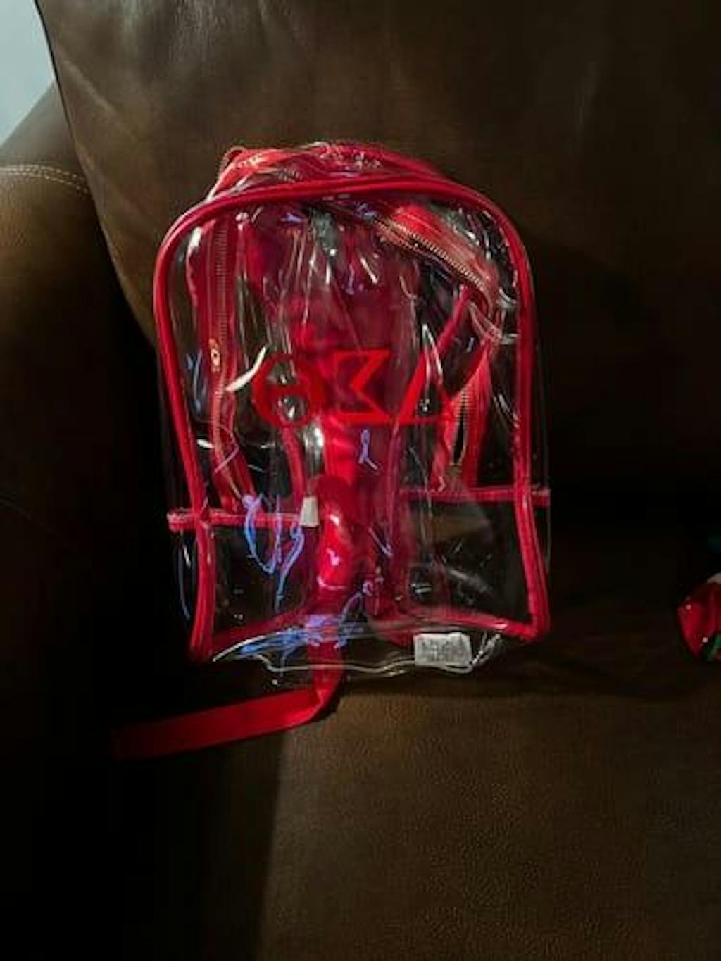 • Clear Backpack Material with Red Accents